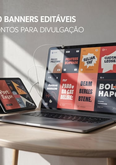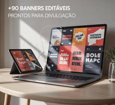 ✅ Mais de 90 artes e banners prontos para editar e revender.